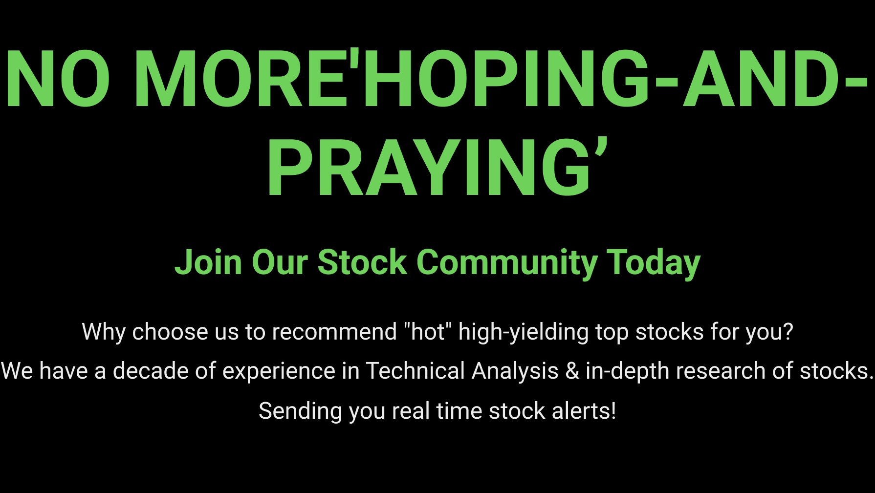 Our system continuously scans the NASDAQ, New York Stock Exchange and all other stock markets analyzing over 8,000 stocks. Our algorithms are similar to those used in extremely profitable ‘high frequency trading’ (HFT) strategies. We are here to level the playing field offering you technology that has too often been reserved for large financial firms, hedge funds, and the Wall Street elite.